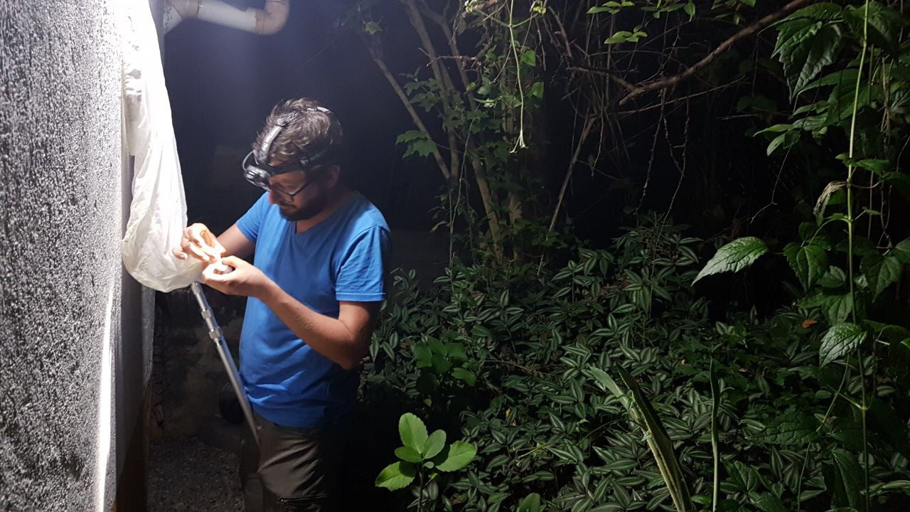 Collecting beetles at the light of our cabañas in Querétaro, Mexico. (Credit: Emmanuel Toussaint)