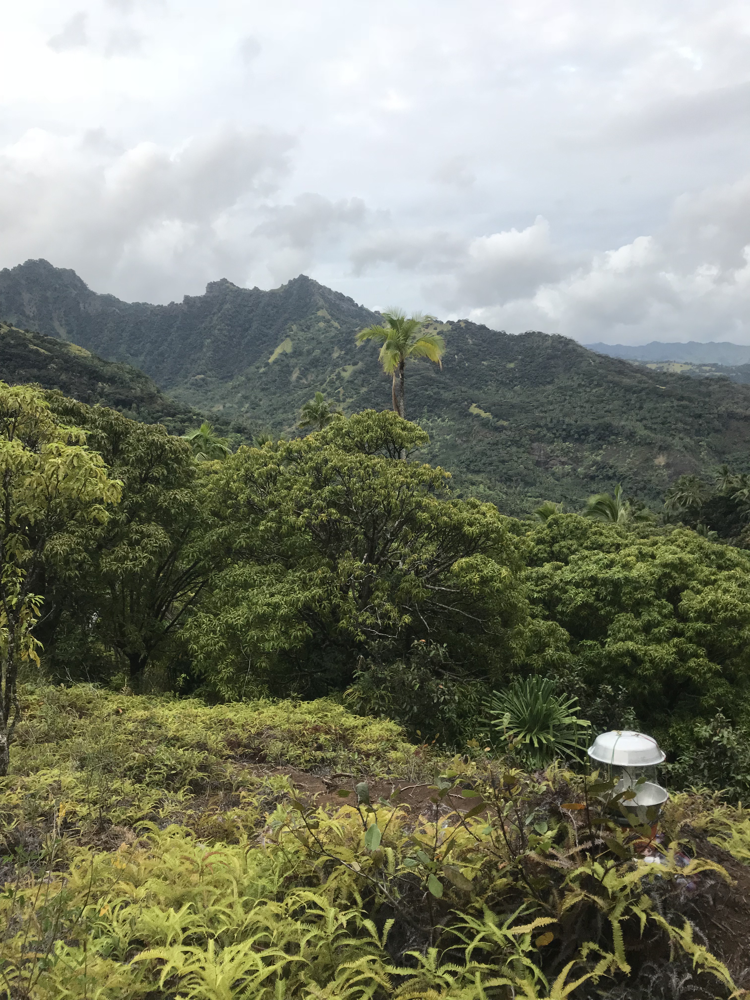 Higher altitude bucket trap setup in Mt Temetiu on the island of Hiva Oa to sample moth biodiversity. (Credit: Emmanuel Toussaint)