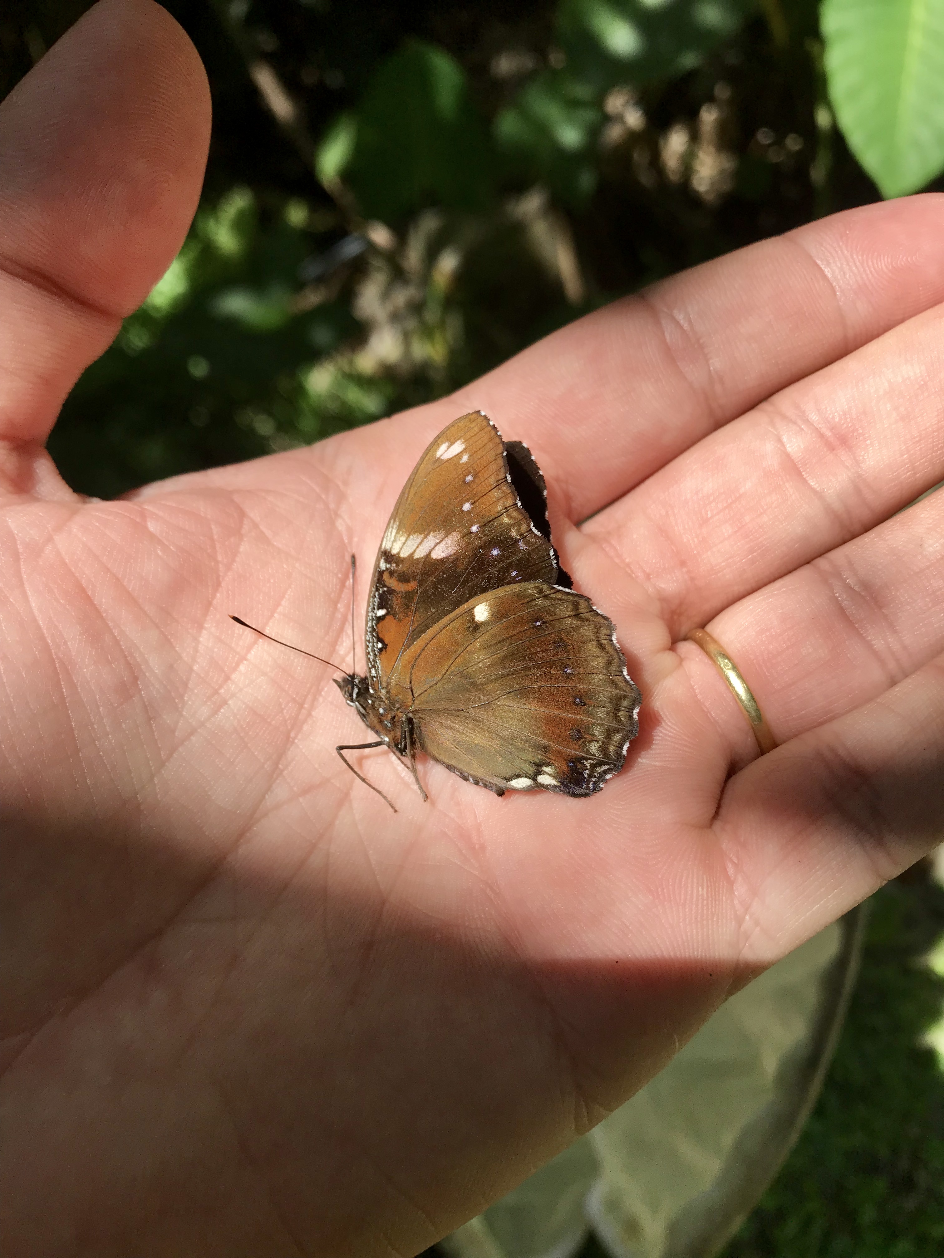 The fabulous Hypna clytemnestra, the sister lineage to all other Anaeini leafwing butterflies (upcoming study), as difficult to catch with a net as any Charaxinae (Credit: Emmanuel Toussaint)