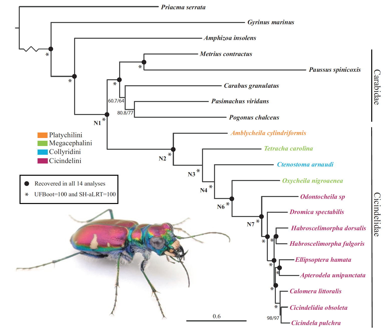 A new phylogenomic backbone for tiger beetles based on the analysis of new transcriptomes. (Gough et al. 2020 / Biol J Linn Soc)