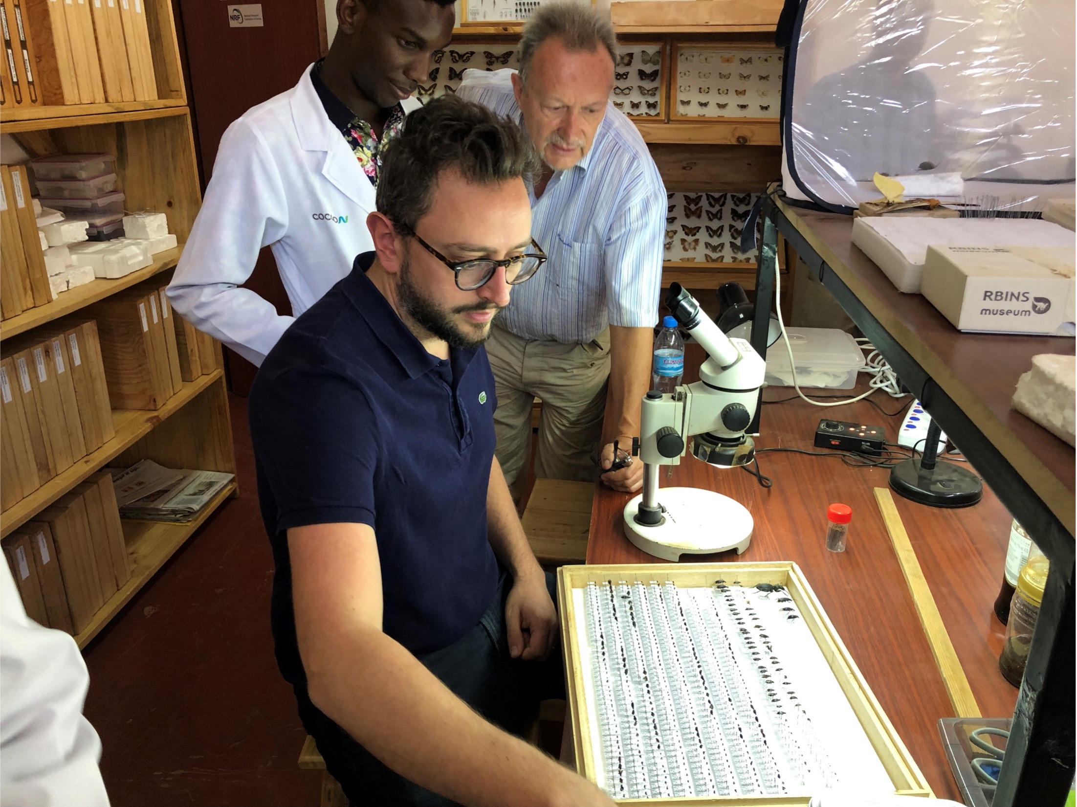 Looking at the insect collection curated by Alain Pauly and his team in TAWIRI, including some very interesting endemic brachypterous Calosoma from the Kilimandjaro (Credit: Laurent Valotton)