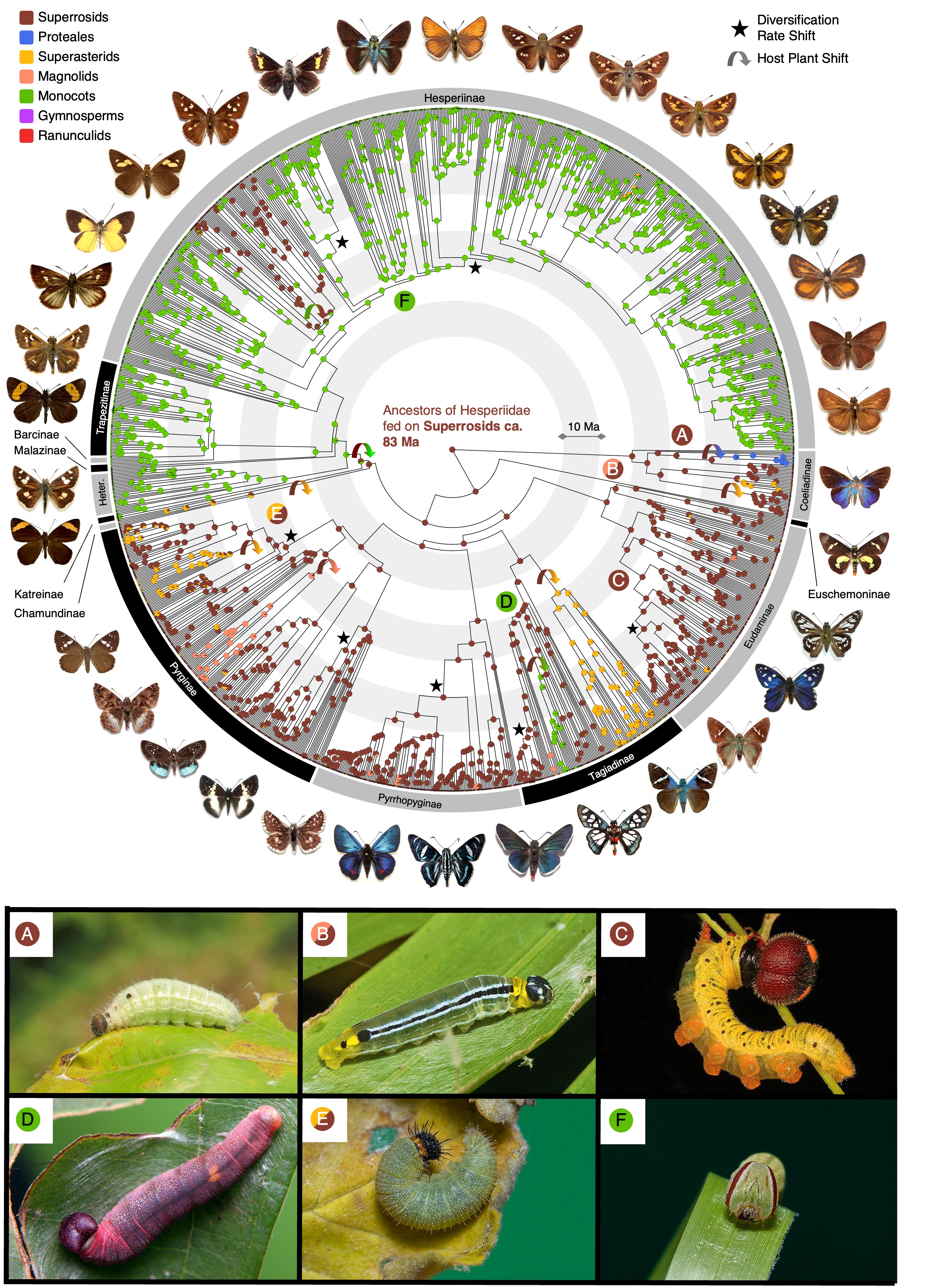 - 08/2025 – Our massive skipper phylogenomic tree was just published in Systematic Biology. An amazing project that took nearly seven years to be finalized. It is an incredible collaboration with many butterfly experts across the planet. The paper infers a robust timetree for Hesperiidae and suggests various drivers for the group diversification through space and time, including a key role of climate cooling.